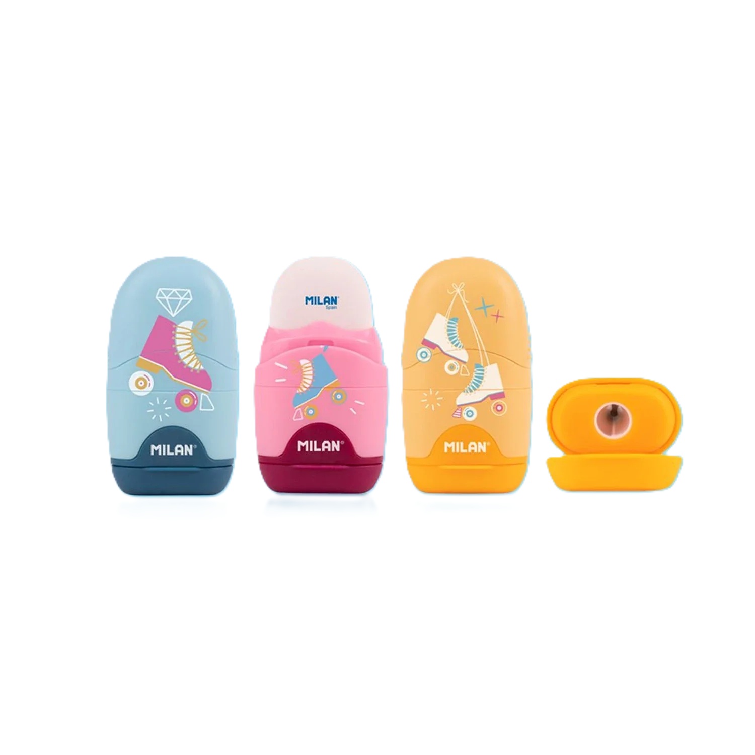 • Combinación de goma de borrar y sacapuntas con depósito.