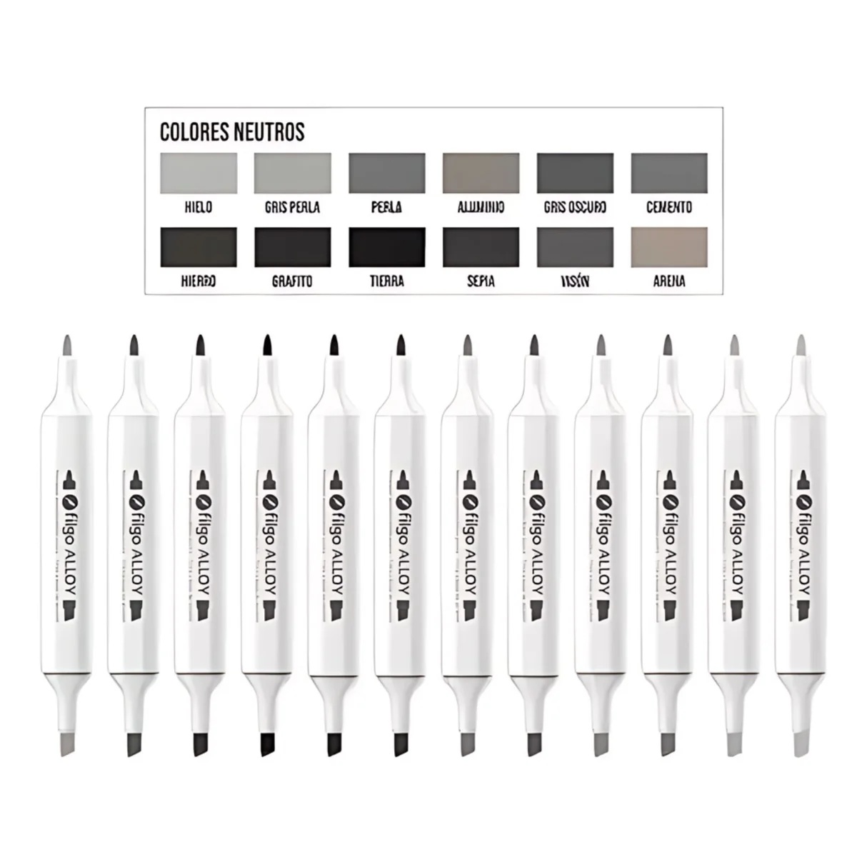 Set 12 marcadores permanentes doble punta Alloy Tonos Grises Neutros