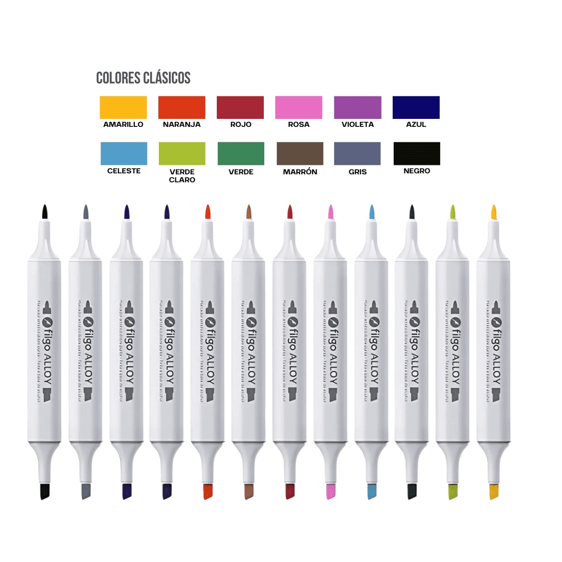 Set 12 marcadores permanentes doble punta Alloy Tonos Clásicos