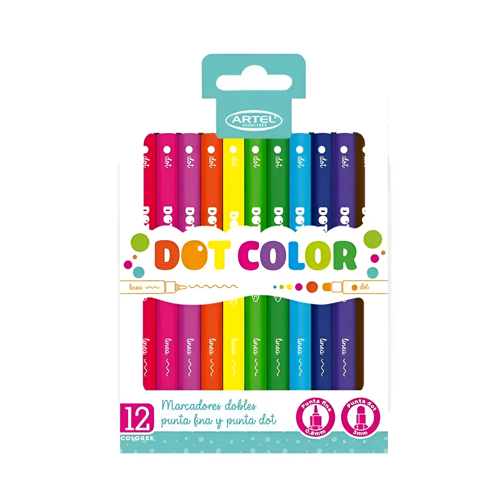 Set 12 Marcadores Doble punta de colores Punta fina y Punta de Puntitos