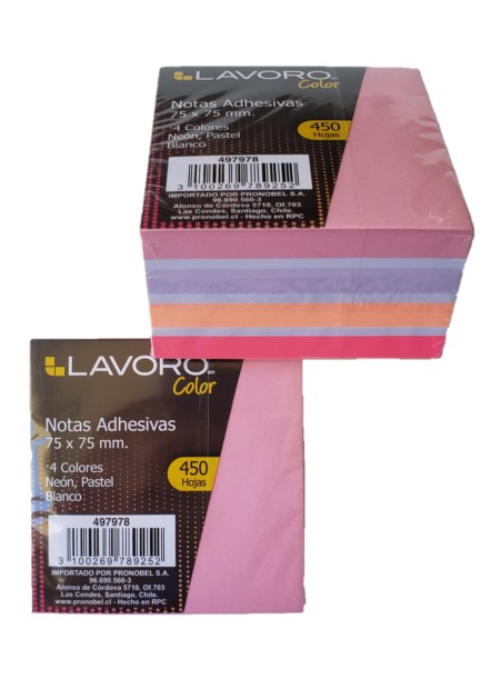 Taco notas adhesivas 4 rosados más blanco, 7,6 x 7,6 cm, 450 hojas