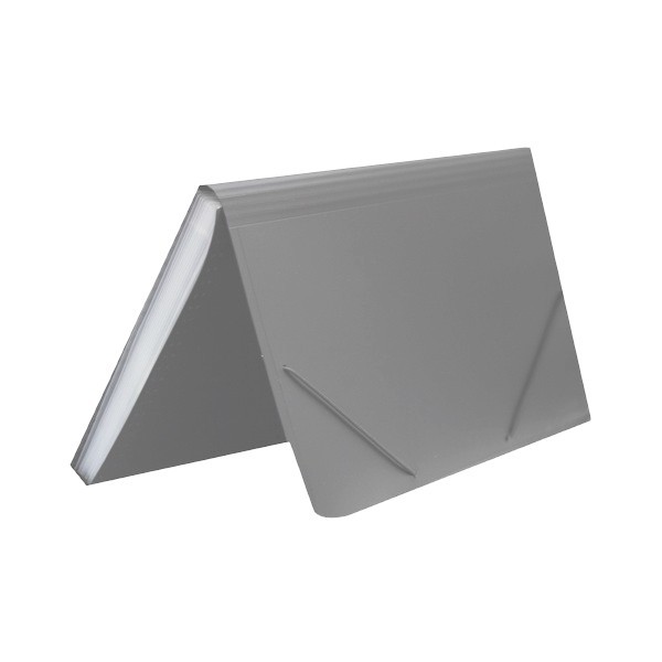 Carpeta gris con fuelle y elástico oficio 12 divisiones